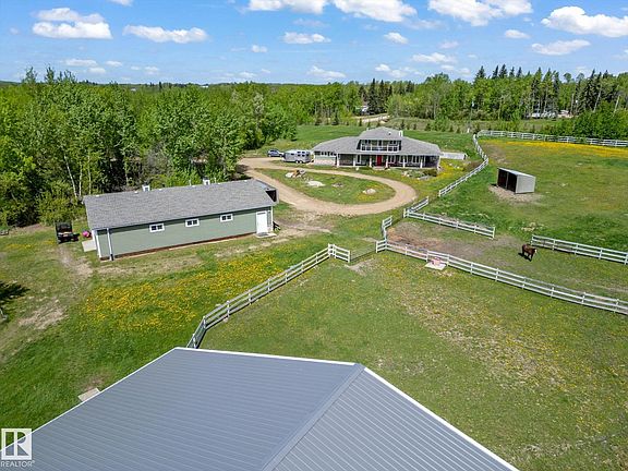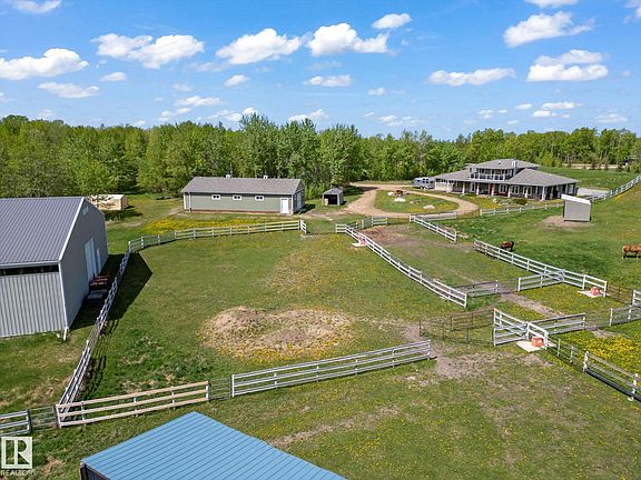 Discover serene country living in rural Strathcona County with this beautiful custom-built 1- 1/2 storey home. Spanning a massive 2,756 sq ft, this home features 3 large bedrooms, 2.5 baths, and sits on a sprawling 40-acre estate with rolling hills and scenic trails. Ideal for equestrian enthusiasts, the property includes a 152' x 70' indoor riding arena, a heated 30' x 60' barn with 6 stalls, and fully fenced ranch areas with 2 large pastures and paddocks. This estate blends luxury indoor living with an expansive outdoor haven, perfect for those seeking tranquility or a vibrant outdoor lifestyle. A rare opportunity to own a piece of paradise in a coveted area.