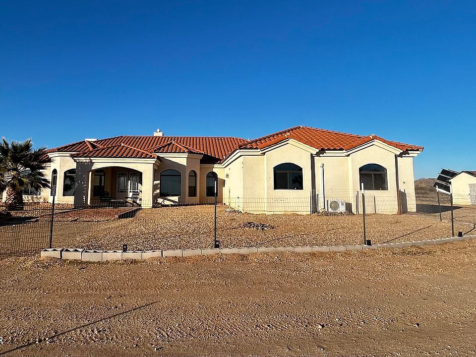 PRICE IMPROVEMENT!! TURN KEY Ranch Home in Yucca, Arizona, this Desert Stone Ranch off grid, is a spacious 4 bedroom, 3 bathroom home spanning 3006 ft. With an extra room you can make it whatever you would like,This Abode features 10-12 foot high ceilings, ceiling fans throughout, concrete stained floors, and a great room with a dual fireplace connecting the kitchen and living room. Gun Safe does stay. Refrigerator, dishwasher, garbage disposal, Stove-Gas, Microwave and Washer all stays with the home. The kitchen boasts modern appliances, granite countertops, and upgraded doorhandles. The Primary suite offers a walk-in shower and Jacuzzi with dual sinks and a generously sized water closet. Telescopic high-lights in primary closet. Tile in bathrooms and carpet in bedrooms. 3 new water efficient toilets and new faucets throughout the house. A spacious 4-car garage, security and conveniences are top notch. Water sprinklers throughout home. New Backup Propane Generator (2024). One stand out feature is the owned solar system with movable trackers, valued around $75,000 more than a regular solar system. Complemented by 16 new batteries which are 1 1/2 years old Upgrades are being made on flooring, pictures to come. ZERO paid for utilities, only what propane you use. All this set on a picturesque 10 acre parcel, this property offers an opportunity to create your own homestead in a safe and serene environment. Fencing is around home, a new 16' gate added. The tiled roof is 2007, the home is built with Rofa blocks, which keeps the home naturally cooler by 10 to 15 degrees.