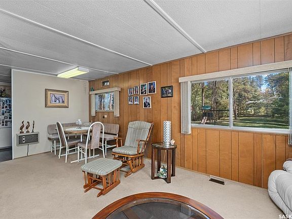 Just 10 minutes from Prince Albert, this well maintained 4 bedroom and 1 bathroom mobile home offers country living with convenience. The expansive living and dining area is filled with natural light from large windows and seamlessly flows into the spacious kitchen that has plenty of storage space. There are 4 comfortable bedrooms and a bright white 4 piece bathroom. Nestled on 1.5 acres, this fully fenced property is surrounded by 200–300 mature trees, precisely planted throughout the landscape to provide both privacy and natural beauty. A sprawling deck and firepit area create ideal spaces for outdoor gatherings, while the added bonus of a heated 7 ft x 18 ft shed adds valuable storage or workspace options. Water is supplied through a shared well located on the adjacent lot and the sewer system is a septic field to a septic tank. Situated near the North Saskatchewan River and the Nisbet Provincial Forest, this home offers a peaceful retreat close to nature. The adjacent lot is also available for purchase (MLS # SK021153), providing an exciting opportunity to expand your space. Act now, make this your next move!