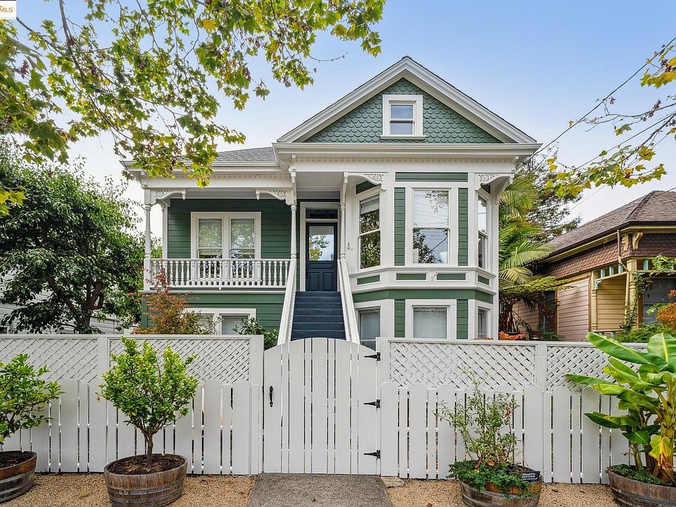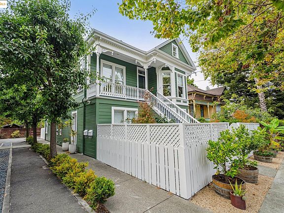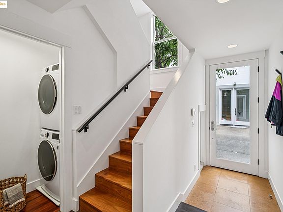2104 Sixth Street seamlessly blends historic charm with modern style. Tucked away and off the street, with a private entrance and patio that’s equal parts retreat and city living, 2104 Sixth Street is just blocks from the restaurants, cafés and boutiques of Berkeley’s 4th Street district. With three levels inside, the entry floor features a serene and spacious primary suite with French doors to the patio, plus a second bedroom and full bath for guests, family, or a home gym. Light filters in through dramatic windows and skylights on the second level, highlighting the beautifully refinished hardwood floors and open living, dining, and kitchen space. A balcony off the dining area overlooking the private patio invites easy outdoor enjoyment. Floating above the main living area is a spacious mezzanine, adding a versatile spot for a lounge, office, or guest nook with a dedicated half bath. Distinctive architecture, private outdoor spaces, and a coveted West Berkeley location make this residence both a stunning design statement and an everyday sanctuary. Some photos may be virtually enhanced.