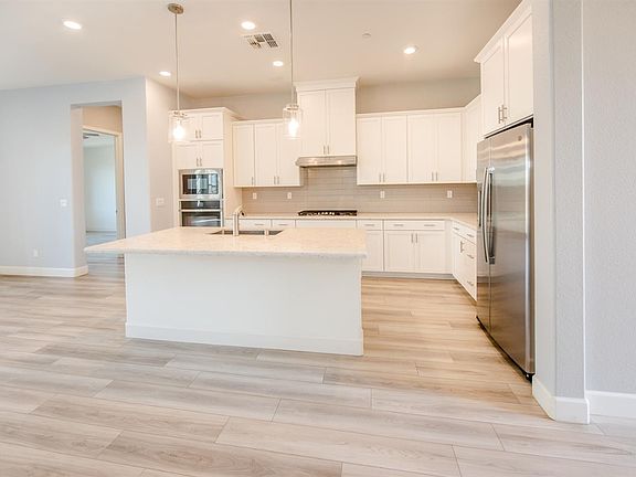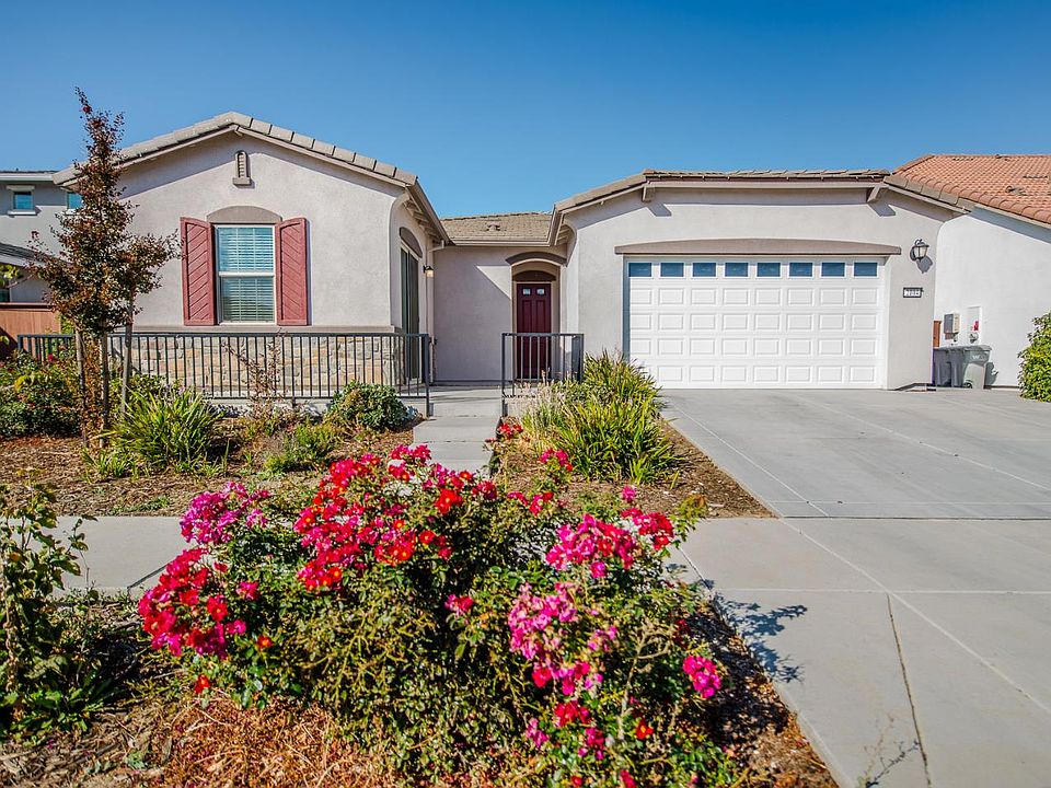 A beautifully upgraded home that blends modern comfort, energy efficiency, and a great floor plan perfect for all! This spacious 3 bedroom home includes an additional flex room with its own private entrance perfect for an office, hobby room or whatever life desires! Inside, you'll find luxury vinyl plank flooring as an upgrade throughout and the natural sunlight peaking through. The upgraded kitchen presents perfectly with a farmhouse sink, upgraded backsplash, lots of cabinetry and counter space, and all appliances included! The primary suite features a dreamy bathroom with a stunning herringbone tile design, a large walk-in closet with loads of storage and double sinks to feel like your in your own lux hotel. Enjoy peace of mind with owned solar panels and a Tesla backup battery to keep your energy costs low. Outside, the driveway has been extended to maximize your use and the large side yard even has space for an RV or boat. The backyard offers space for a built in pool, a covered and extended patio for all season enjoyment, along with a lush grass area perfect for outdoor entertaining, kids at play, or pets to roam freely.