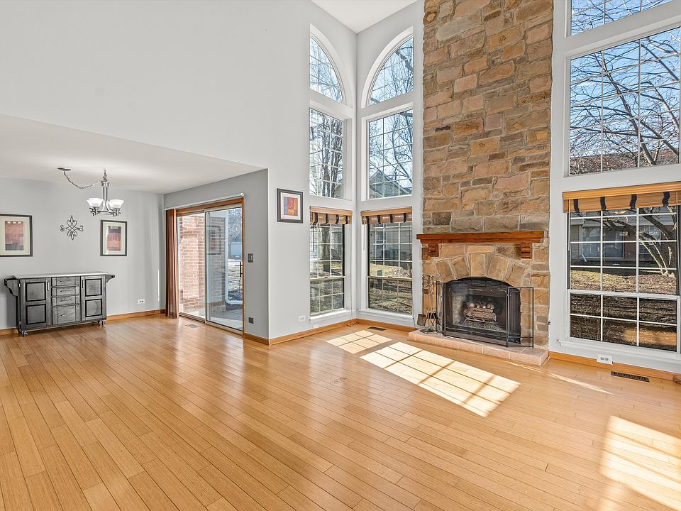 this townhouse nestled on a quiet, cul-de-sac street in the desired Mayfair Station community, where all that's left to do is move in! The living room welcomes you into the home boasting high ceilings, hardwood floors, floor-to-ceiling cultured stone fireplace and plenty of windows to let the sunshine in. The hardwood floors continue into the kitchen which offers SS appliances, custom backsplash and plenty of cabinets for ample storage. Large 2 car garage. The laundry and a half bath are also on the main level. Upstairs offers 3 generously sized BRs and 2 recently updated full bathrooms including the primary BR that boasts vaulted ceilings, double closets and a newly renovated, custom primary bathroom that offers dual sinks and a step-in shower. The 2 car garage offers more storage or room to work on those projects with a deeper stall built in. Enjoy the outdoors on your private patio or on the walking paths and park nearby. So close to schools, shopping, entertainment, parks/paths, expressways, Metra and so much more! Property small dog or cat friendly with $350 non refundable fee - up to two pets. All applicants must have positive rental history and FICO credit score for all applicants above 690. Please no co-signers.