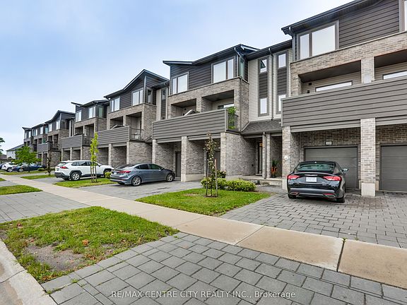 Welcome to this bright, modern, and impeccably maintained 3-storey townhome in VIBE, a sought-after Summerside community. Built in 2019, this 1,737 sq. ft. home blends contemporary style with practical living, perfect for families, professionals, or investors. Step into a sunlit foyer with tile flooring and direct access to the attached single-car garage, ideal for rainy or cold days. The ground level features a versatile fourth bedroom with its own 3-piece ensuite and sliding doors to a private deck, perfect as a guest retreat, office, or media room. The second floor with its soaring 9-ft ceilings and large windows fill the open-concept living, dining, and kitchen area with light. The kitchen boasts quartz counters, modern cabinetry with under-cabinet lighting, and stainless steel appliances, complemented by ample storage and prep space. The dining area with a picture window and the inviting living room opening to a private balcony make entertaining effortless. A 2-piece powder room completes this level. The top floor offers comfort and privacy with a spacious primary bedroom featuring an oversized closet and 3-piece ensuite. A convenient laundry closet with a stacked washer/dryer is also on this floor. Located minutes from Victoria Hospital, shopping, dining, White Oaks Mall, parks, and recreation, with easy access to Highways 401 and 402 and public transit. Affordable condo fees make this a low-maintenance, move-in ready home with freshly painted interiors. With modern finishes, bright living spaces, and an unbeatable location, this Summerside townhome is ideal as a family home, shared living, or turnkey investment. Schedule your private showing today!