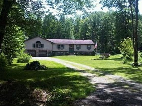 Welcome to privacy! The home offers room to roam inside and out! A nice-sized eat-in kitchen with sliding doors leading out onto the back deck. At least 4 bedrooms on the main floor with 2 full baths and the lower level has a den and potential 5th bedroom with a half bath. The den has a large propane fireplace for additional heat. The garage has room for tools and toys. The lot is mostly wooded with clearing around the home for added privacy.