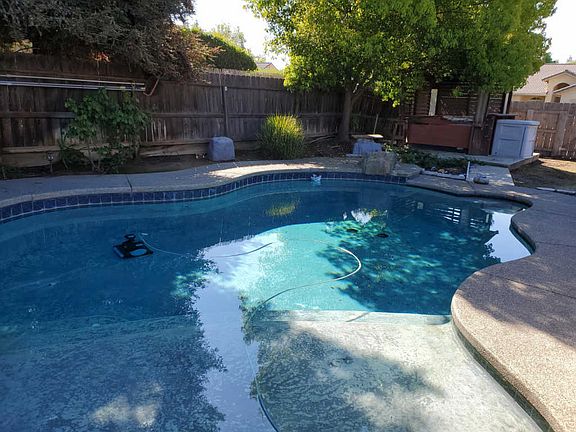 This NW Visalia 4 bed 2 bath home features tile roof, laminate floors in living room and hallway, a beautiful pool, granite kitchen countertops, fresh interior paint and new carpet in the bedrooms. The patio was professionally enclosed for more living space (not included in square footage).