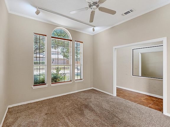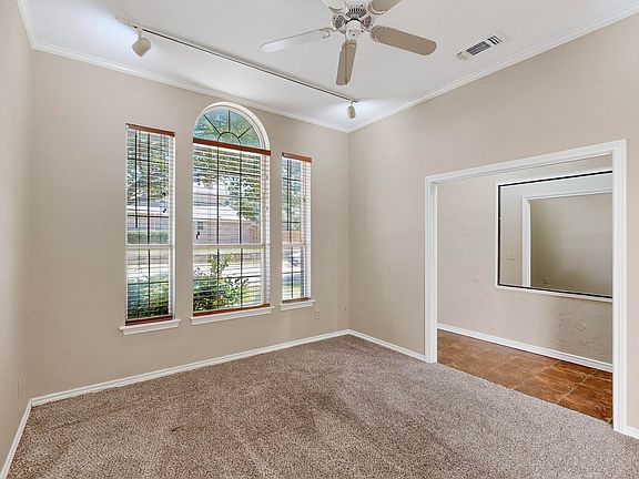 Beautiful brick residence situated on a well-maintained golf course lot! The main level offers spacious areas for both living and dining, complete with a wet bar and soaring vaulted ceilings. The kitchen is equipped with generous cabinet and countertop space. Upstairs, a versatile loft provides additional living or entertainment space. The primary suite includes a luxurious garden tub, double vanity, and an expansive walk-in closet with built-in shelving and a dedicated dressing area. Conveniently located close to parks, a movie theater, and exclusive country clubs.