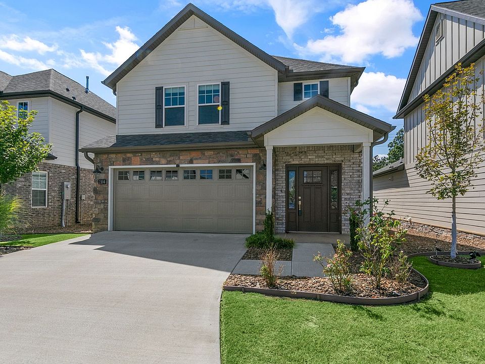 This well-designed 4-bedroom, 2.5-bath home with a 2-car garage is minutes from Walmart HQ, parks, trails, schools, and hospitals. Cozy living area with a fireplace and an open layout. Kitchen which features an island with bar seating, and ample cabinet space. The dining area is bright and inviting. Upstairs, all bedrooms offer privacy, including a spacious primary suite with a walk-in closet and a large walk-in shower, jacuzzi tub, and upgraded tile. Background and credit check required