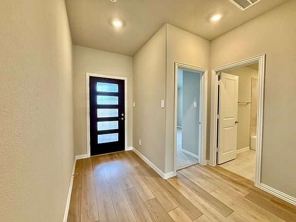 Exquisite New Construction in Prestigious HOA Community!! Experience refined living in this brand-new 4-bedroom, 3-bath residence, thoughtfully designed with upscale finishes and a sophisticated, modern aesthetic. Nestled within a desirable HOA community, this home offers an exceptional blend of elegance, comfort, and functionality. Soaring high ceilings and recessed lighting enhance the expansive open-concept living, dining, and kitchen areas, creating a seamless space ideal for both entertaining and everyday luxury. The designer kitchen showcases granite countertops, a striking tiled backsplash, and a full suite of premium appliances, including washer and dryer. Two bedrooms feature private ensuite baths, including a serene primary retreat complete with a spacious walk-in closet, double vanity, and an oversized walk-in shower. Bedrooms are appointed with plush carpeting, while the neutral interior palette provides a timeless, upscale ambiance. Step outside to a covered back patio overlooking a privacy-fenced backyard, perfect for relaxing or hosting intimate gatherings. Additional highlights include a two-car garage and impeccable modern detailing throughout. This move-in-ready home offers elevated living at its finest where luxury meets thoughtful design.