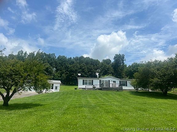 Would you like to live in a low traffic area? How about a dead end road? Look no further! This is a 3 bedroom, 2 bath home that is approximately 1568 finished sq ft. It has a split bedrm floor plan, living rm AND family rm for those large gathering or just to spread out. The primary bath has large shower for handicap accessibility and a smaller shower: Kitchen is spacious, island/bar area, over-sized pantry, kitchen appliances remain with home. Laundry room off the kitchen and the washer and dryer remain. Looking for SPACE for your TOYS? This detached garage that is 24x40 that has concrete, electric and water! There is room for a storage space, car lift, boat, side by side etc. The paved drive has an abundance of space for parking and is a wrap around driveway that is unique. The yard is large enough that you have space without being a burden to mow with room for fire pit area, garden etc. It is in the country yet only 10 minutes to Corydon, 30 min to New Albany, & 45 to Kentucky Truck Plant/all thing ?east end?. Thai home in minutes O'Bannon Woods that has a pool, hiking, biking, horse campground, & much more. Sq ft & rm sz approx.