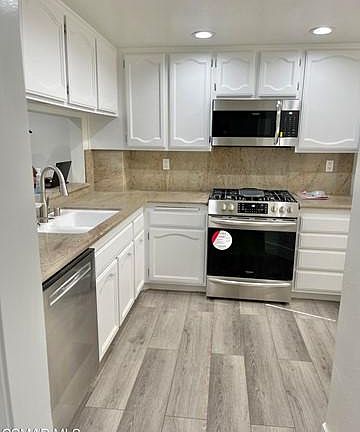 This beautiful upgraded 2 bedroom, 2.5 bathroom condo is located in a great area of Canoga Park. This complex is gated with an automatic garage door and 2 private parking spaces. As you enter the condo you are greeted with gorgeous new vinyl wood-like flooring throughout. The kitchen has granite counters, resurfaced white cabinets, all new stainless steel appliances... Stove, microwave, dishwasher, and refrigerator. The living room has a cozy fireplace and a glass slider to a small balcony. Upstairs is the large master bedroom with new mirrored closet doors and an upgraded master bath with new vanity, shower, plumbing, and flooring. Down the hallway is the second bedroom and a remodeled bathroom. The laundry area has a newer washer and dryer included. This home has all new doors thru-out, interior paint, newly installed recessed lighting, KEVO- Kwik Set smart lock, NEST thermostat, home security system, and RING door bell . If you are looking for a turn-key 2 bedroom, 2.5 Bath condo in the valley, this unit is for you. Close to restaurants and shopping.