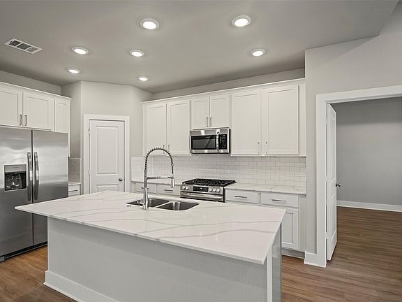 Introducing a beautifully designed 4-bedroom, 2.5-bath home in Marvida—perfect for families seeking space, comfort, and value. This thoughtful two-story layout features a main-level formal living area and a relaxing primary retreat. The open floor plan flows seamlessly into a bright family room and kitchen complete with a walk-in pantry. Upstairs, you’ll find three spacious bedrooms and a large utility or storage area, providing flexibility for modern living. Secondary baths combine style and function, while luxury vinyl plank flooring enhances the main spaces and cozy carpet adds warmth to the bedrooms. Step outside to a covered patio and private backyard—ideal for entertaining or quiet evenings. Residents enjoy resort-style amenities including a lazy river, clubhouse, sport courts, and more. Located in Cypress-Fairbanks ISD, this home delivers exceptional value and convenience. Every Clay Residential home includes one year of Clay Care for truly effortless living.