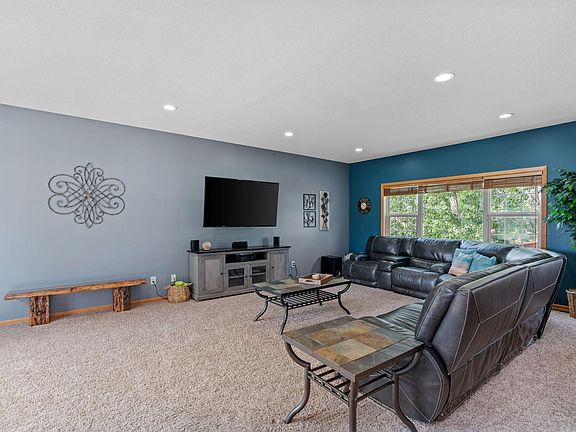 Discover your dream home on a quiet cul-de-sac in Rogers! This elegant 2 story home boasts a vaulted entrance, a large living room, and main level office space, creating a warm and inviting atmosphere. The heart of the home is the eat-in kitchen, featuring a center island, quartz countertops, tile backsplash and ample storage. Adjacent to the kitchen is a convenient mudroom with laundry and a half bath. Upstairs, you'll find three generous bedrooms, including a primary suite with a walk-in closet and ensuite bath. The lower level offers a versatile space with room for a potential exercise room, a second family room, and built-in dry bar, making it an ideal space for entertaining or movie night. Enjoy outdoor living on the expansive deck or relax with your morning coffee on the charming front porch. The generously sized, and private backyard is a true oasis, overlooking a tranquil pond and limited view of neighbors.