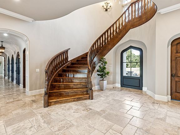 Welcome to this exceptional luxury estate in the highly coveted, gated community of The Landing on the North shore of Lake Grapevine—where refined elegance meets everyday luxury, spanning across 2 pristine acres. Recently reimagined with an extensive interior and exterior renovation, this architectural masterpiece blends classic European sophistication with the finest modern amenities. Beyond the new slate roof and striking black-framed windows, an all-new resort-style backyard awaits. From the stunning new pool and elevated spa to dramatic fire features, a serene loggia, and lighted stone steps, every inch has been thoughtfully curated for private outdoor entertaining. Mature trees provide year-round seclusion, with the home backing to a protected Corps of Engineers nature preserve—ensuring lasting privacy and serenity. Inside, expansive living spaces unfold beneath beamed and coffered ceilings, anchored by a grand family room overlooked by mezzanine sitting area with Juliet balconies and exquisite lighting. The chef’s kitchen is a showpiece—fully updated and outfitted with premium appliances and custom finishes. A romantic owner's retreat features vaulted ceilings, sitting area, fireplace, and a newly redesigned primary en-suite bath with dual custom closets and an in-suite washer and dryer. Additional luxuries include a formal executive study with fireplace, a spacious home gym, and a separate living quarters—ideal for guests, multi-generational living, or a private studio. Car enthusiasts will appreciate the 2,850 sq ft heated garage space. With fresh designer paint inside and out, all-new landscaping, and exquisitely reimagined interiors—including a showstopping kitchen —this estate delivers the ultimate in turnkey, resort-style living. A true crown jewel, this irreplaceable legacy estate fuses timeless architecture, unparalleled privacy, and world-class amenities to stand among the most iconic luxury properties in all of North Texas.