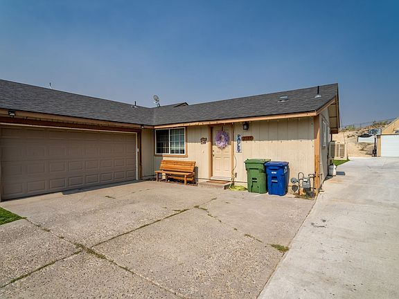 Have you been searching for a home in Elko with RV Parking? Plus a shop? Plus a cul-de-sac location, large lot, landscaping done, & under $300,000? This is your ticket! You'll fall in love with the lush green grass in front & back (with sprinklers) & fenced-in back yard. Enjoy the sights from the covered patio! Tons of concrete for your RV/cars that lead back to the 12x18 shop (on concrete with roll-up door & shelf/loft), including a 12x14 storage shed, 6x10 open shed, greenhouse & dog kennel ready for you to start occupying! Home also comes with your own personal "Fireworks" pad to watch Elko's 4th of July firework show! Apple, Pear, & Peach trees have also been planted including a beautiful blue spruce! Inside you'll walk into the living room with a pellet stove & dining room that leads to the kitchen with stainless steel appliances. Main bedroom has its own bathroom & natural light. The other two rooms are also a great size! The hall bath was just remodeled including vanity, toilet, & flooring. New vinyl windows throughout! Attached garage has above storage from pull-down ladder. Concrete driveway is huge! Great space to enjoy!
