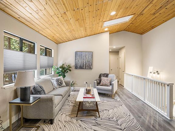 Charming Blue Lake Springs Retreat, thoughtfully designed mountain living! Welcome to the home you've been waiting for in the desirable Blue Lake Springs community. Nestled among the pines, this inviting mountain getaway offers level access and a spacious 2-car finished garage with a sleek epoxy floor, perfect for vehicles, gear, or hobbies. Step inside to a bright and open-concept floor plan, ideal for entertaining or relaxing after a day outdoors. The vaulted pine ceilings add warmth and character, beautifully complementing the luxury vinyl-type plank flooring throughout. The chef's kitchen features granite countertops, a gas range, and ample cabinetry, creating a functional and stylish hub of the home. Enjoy the serenity of the private back deck, perfect for morning coffee or evening gatherings. A covered porch off the garage adds convenience for firewood storage or sheltered access during winter months. Downstairs, you'll find a versatile recreation room with a full bathroom, offering the flexibility to serve as a guest suite, game room, or private primary retreat. Additional upgrades include custom blinds, a cozy wood-burning stove, and central heating for year-round comfort. Whether you're looking for a full-time residence or a weekend escape, this turnkey home offers the best of Blue Lake Springs mountain living: comfort, style, and the perfect location!