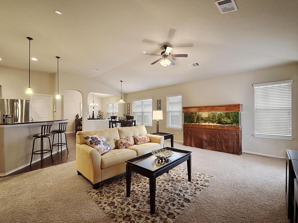 Updated & affordable w panoramic hill country views off the custom deck! Open floorplan w huge living, 4 beds + office w glass french doors! Handscraped wood tile, granite counters, travertine backsplash w mosaic inlay, SS appliances, WIP, custom farmhouse lighting, oil rubbed CF, double vanities in master & spare, 2 master closets, sep tub/shwr, wired for surround sound, tasteful deco colors & 2" blinds! 10 min to DT Austin & close to shopping, the Veloway, Alamo Drafthouse & tons of yummy restaurants!