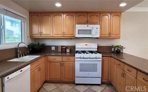 * Updated back house of a duplex that feels like a single family home with a great back yard. * The units are detached and only connected by the garages in between. * The home has a beautiful kitchen with a dining area opening to the living room. * Main bedroom has its own bathroom with a shower. * Other two bedrooms share a full bath. * Dual pane windows, newer flooring, organized closets, LED lights and new paint throughout. * Nice blinds in all bedrooms and kitchen. * Laundry area inside the unit (next to the kitchen). * Two car detached garage. * Very spacious back yard. * Pets considered. * Landlord pays for the water, trash removal and gardener. * Fridge, washer and dryer could be provided, if needed.