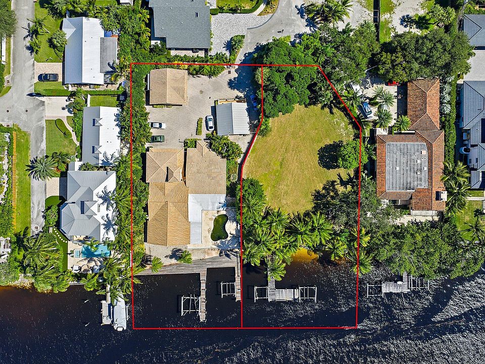 Positioned at the end of a quiet, mature oak tree-lined, cul-de-sac street, West of Ellison Wilson Road and North of PGA Blvd. in a community with no HOA fees, build your direct intracoastal dream home on this lot with a view of the preserve across the water. Other options include combining this lot with the parcel immediately adjacent to the South (2103 Cove Lane also for sale) and building an amazing home on over 204 feet of direct waterfrontage on the Intracoastal Waterway, located in the highly desirable ''No Wake Zone'' between PGA Blvd. and Donald Ross Road on the East side of the waterway. Another option includes purchasing both lots, building a spec on one, and saving the other property to duplicate the success of the first build. Both properties are already zoned for low-density residential multi-family. This presents a unique opportunity to pursue a one-of-a-kind mulit-family waterfront development and create an income-producing investment from the units and boat slips. The South vacant lot (2103 Cove Lane) is .35 acres and 105 feet of frontage on the water, and the North lot (2105 Cove Lane) is .41 acres with 99 feet of frontage on the water, a home and two apartments, plus a garage and shared pool. The combined properties boast three docks, two boat lifts (16,000 Lbs. and 12,000 Lbs.), and water and sewer to the site. The possibilities with these lots are truly limited only by your imagination.
