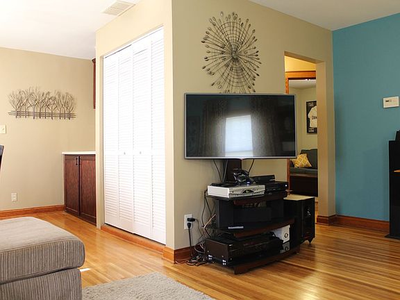 Inviting, beautifully cared for east side property. Truly lovely inside and out this is the ideal home for hosting get-togethers with loved ones. A spacious living room with hardwood flooring is combined with the dining area featuring a lovely new bar. Preparing meals will be a breeze with loads of cabinet and counter space in the updated eat-in kitchen offering a large pantry closet. Just off the kitchen is a cozy sunroom with a full wall of windows, fireplace, and built-in bench seating. There are two nice sized bedrooms and a full updated bath. Outside you'll find an amazing double tiered deck overlooking the large back yard great for grilling and summertime entertaining. Detached one car garage. Purchase includes the range/oven (gas), refrigerator, washer, and dryer.