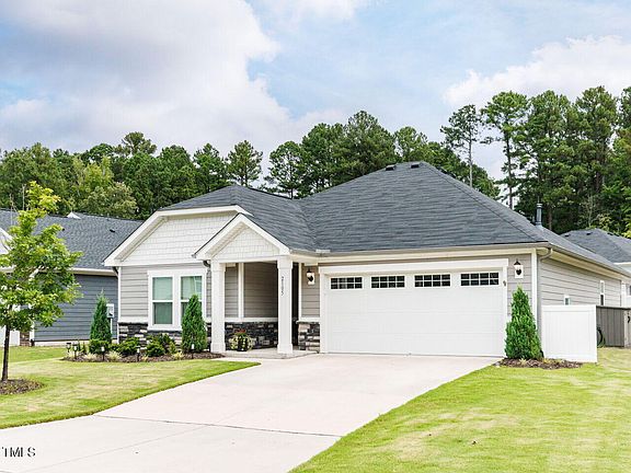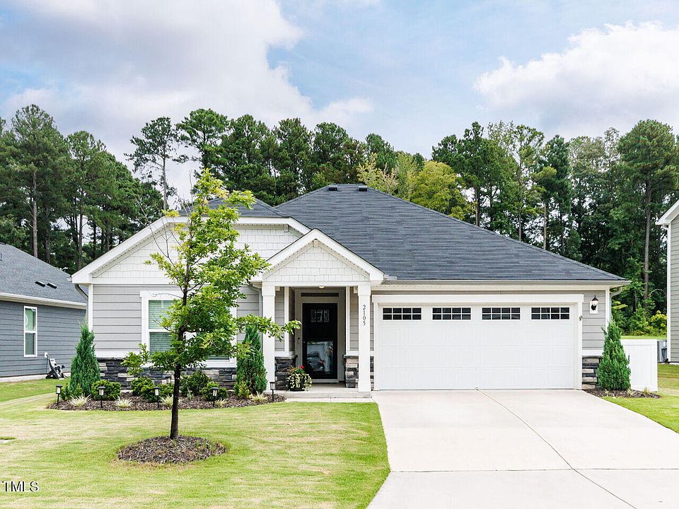 Beautiful ranch w/ covered front & rear porches, fenced rear yard & convenient 1-level living. Clean & durable luxury vinyl plank in common areas (kitchen, dining & family rooms). Kitchen features center island breakfast bar w/ granite, SS appliances, dishwasher, disposal, walk-in pantry, recessed lights, soft-close cabinets, gas range & tile backsplash. Primary bedroom w/ ceiling fan, attached bath w/ dual sink vanity w/ shower & walk-in closet. Epoxy floor in garage w/ shelving. Gas log fireplace, stone patio in rear yard. Nearby dog park (just blocks away). Convenient location!