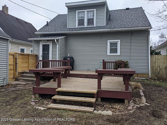 Newer composite front porch, new siding on the house in garage in 2022. Fenced in backyard with generous tiered deck off rear breezeway to kitchen. Kitchen cabinets painted, new flooring, counter top, backsplash and dishwasher in 2020.