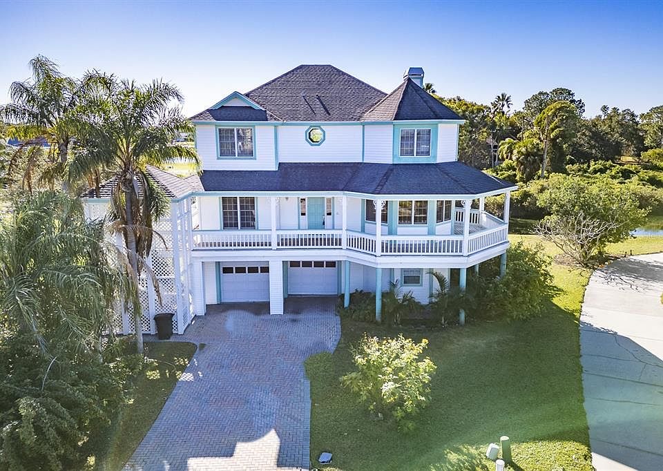 HUGE PRICE REDUCTION!!!!! Welcome to the outstanding Harbour Watch, a gated, guard-attended 24/7 resort-style community nestled on a peninsula overlooking the Gulf. This stunning Key West-style 3-story home offers partial Gulf views and over 150 feet of water frontage on a winding 14-acre lake. Featuring a beautiful island kitchen with upscale wood cabinetry, granite countertops, and stainless-steel appliances. The large family room with a fireplace and wood flooring is perfect for gatherings. With 3 and 1/2 baths featuring upscale wood cabinetry, travertine floors, and granite countertops, and separate formal living and dining rooms finished with wood flooring, this home exudes elegance. The main level is finished with hardwood flooring and decorative plantation shutters. The primary bedroom boasts partial Gulf views in the front and a private balcony overlooking the 14-acre winding lake. There are also spacious bedrooms two, three, and four. The main level of the home offers a wonderful wrap-around balcony, and the base level features a large bonus room. Additional features include an oversized tandem garage with room for 2 to 3 cars plus a storage room. Both A/C systems were installed in 2017. The large cul-de-sac homesite provides ample space. Harbour Watch offers fantastic community amenities, including a large pool and spa, clubhouse, community pier for fishing or sightseeing, playground, tennis courts, pickleball, and basketball court. Located in a perfect coastal location, with several area beaches, island state parks, golf courses, and marinas nearby for family fun! Buyers can only enter Harbour Watch if accompanied by a realtor. GREAT BUY!!!