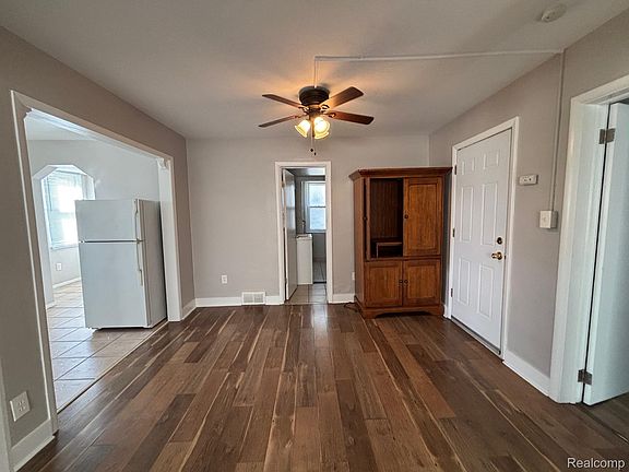Great potential in this Ferndale 3 bedroom, 1 bath home across the street from Martin Park! Great covered front porch. Open living room/dining room, large kitchen with cabinets and counters galore. Cute little flex space off the kitchen could be a great pantry, breakfast nook or home office. French door leads to laundry area and access to rear yard. 1st floor primary bedroom. Two bedrooms upstairs with unique storage and built-ins. Private fenced yard with rear patio and 1 car garage. House has been a licensed rental for many years. All appliances included. House is being sold "As-Is".