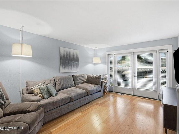 Ground-level South Anchorage condo featuring two bedrooms, two bathrooms, and in-unit laundry. Updated throughout with bamboo floor, newer lighting and paint. Large Primary Suite with double closets and en-suite bathroom. Enjoy a private fenced yard and a beautiful deck ideal for outdoor living. Large, heated storage closet off of deck. Ready for comfortable, low-maintenance living