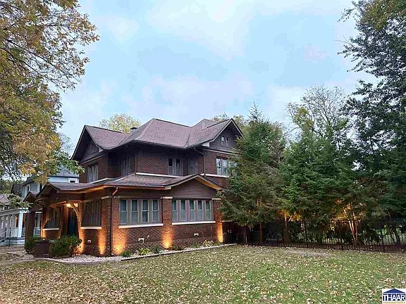 Step into timeless elegance with this historic American Four Square, originally built by Josephus Collett himself. Perfectly situated on a corner lot just steps from Collett Park, this home has truly stood the test of time, blending historic charm with modern updates for a beautifully unique take on a classic. Inside, 10-foot ceilings create a spacious, refined feel on the main level. The expansive living and dining space is anchored by a gas fireplace, while the stunning family room (or formal dining room) showcases oak coffered ceilings, rich wainscoting, and an additional gas fireplace. The flow continues into the fully remodeled eat-in kitchen, complete with custom cabinetry, quartz countertops, and a charming bay window that fills the space with natural light. The main level also offers a flexible room, perfect as a 4th bedroom, office, or study—conveniently paired with its own full bath. Upstairs, you’ll find two bedrooms with an updated full bath, plus a generous master suite featuring French doors, a large walk-in closet, and a beautifully updated bath with a tiled shower and glass doors. Outdoor living is just as inviting, with an enclosed porch and partially covered deck, all overlooking the thoughtfully landscaped and fenced yard that provides privacy and seclusion. This is more than just a home—it’s a rare opportunity to own a piece of Terre Haute history, thoughtfully updated for today’s living.