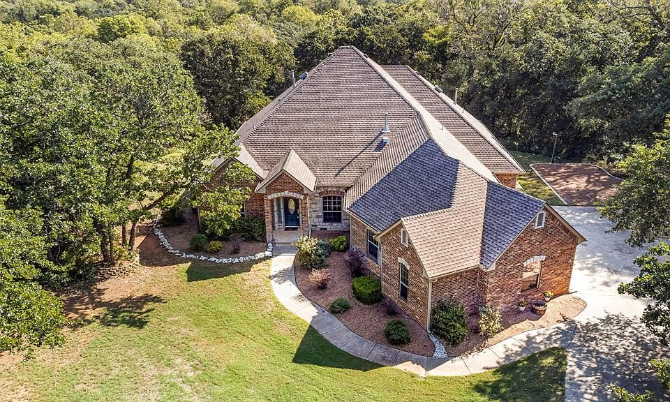 Nestled in the Oak Ridge Addition, this property offers the perfect mix of peaceful country living and modern convenience—just 5 minutes from Lake Thunderbird’s entrance and about 15 minutes from OU Campus, shopping, and amenities. Situated on a 2.20-acre lot surrounded by mature trees, you’ll love the privacy and space this setting provides. With no HOA, you have the freedom to create the lifestyle you’ve been dreaming of. This spacious residence features 5 generously sized bedrooms, all located on the main floor. An extra office space and a large upstairs theatre room above the garage offer endless possibilities for customization. The home was remodeled in 2014 and has had many updates since, including new wood-look porcelain floors, stunning stone details on the fireplace, and living room windows that frame a serene backyard view. The master suite is a true retreat with dual vanities, a large jacuzzi, separate shower, linen closet, and an impressive walk-in closet with built-ins. The chef’s kitchen offers ample cabinet space, a new sink faucet, pantry, gorgeous cabinetry, and plenty of counter space for entertaining or family meals. Outside, enjoy a beautifully landscaped front yard, 3-car garage, oversized driveway, pea-gravel parking, and a spacious patio overlooking the yard. Safety and comfort are ensured with an above-ground storm shelter, whole-house generator, and brand-new 50-gallon water heater. Tech enthusiasts and remote workers will love the gigabit fiber internet, ideal for seamless work-from-home or streaming.