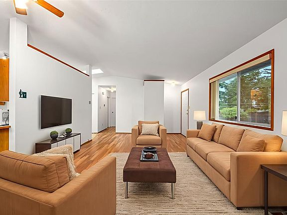 Vaulted ceilingsHardwood laminate floorsAbundant natural lightWell-equipped galley kitchenFully fenced sunny backyardTiled patio areaPowered storage room