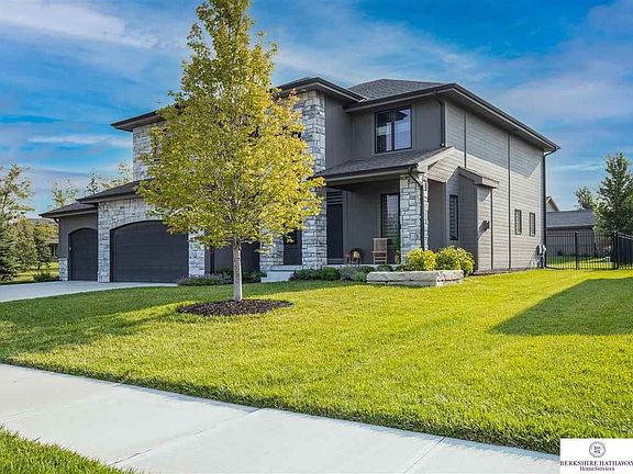 Expansive 2 story in The Prairies, one of Elkhorn South's most coveted neighborhoods, is located just steps from community pool & clubhouse! You will be greeted by soaring 2 story entry leading to open main level with gorgeous hardwood floors and tons of windows flooding the space with natural light. Custom kitchen with ample cabinet & pantry space, large island, granite & SS appliances. Just what everyone is looking for today...main floor His & Hers private office spaces. The 2nd level boasts huge master suite retreat with His & Hers vanities, walk-in shower w/double shower heads, jetted tub, large walk-in closet & attached laundry area. Also featured on the 2nd floor is beds #2 & #3 sharing a Hollywood style double bathroom as well as a #4 bedroom suite w/private bath. You will love the fully finished basement with theater area & wet bar as well as full bath & 5th bedroom or game room. East facing covered patio overlooks the expansive fully-fenced yard.