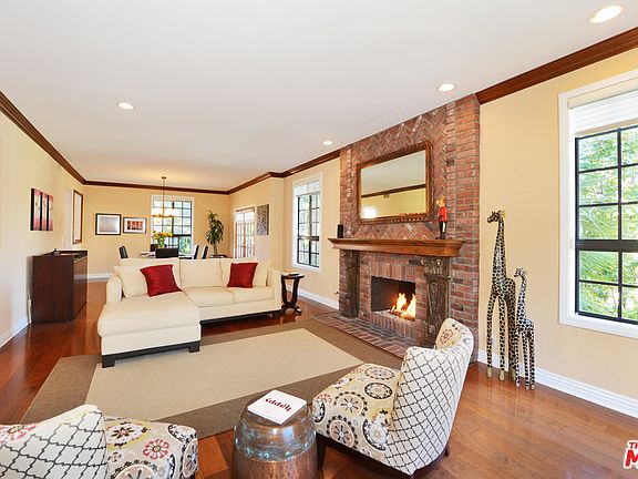 This is what you have been waiting for! Rare front facing condo in small 6 unit bldg w/optimal floor plan. Expansive open concept living room & dining room w/12 ft ceilings, oversized windows that flood this space w/lots of natural light, French doors open onto balcony & tree-lined street. Large exposed brick gas fireplace provides warmth & beauty. Condo is finished w/walnut floors, crown moldings throughout, double door entry, bar area, central heat & air, lots of storage & in unit washer/dryer. Large eat-in kitchen opens up to the dining area, perfect for entertaining. Upgraded kitchen w/wood cabinetry, Caesarstone countertops, recessed lighting & stone backslash. The Master features large walk-in closet & oversized upgraded bathroom w/dual vanities, frameless glass shower enclosure & large soaking tub. 2nd bedroom has ample closet space & upgraded bathroom. Prime Westwood location, walking distance to restaurants, Expo line & Westside Pavilion. Come take a look before it's gone!