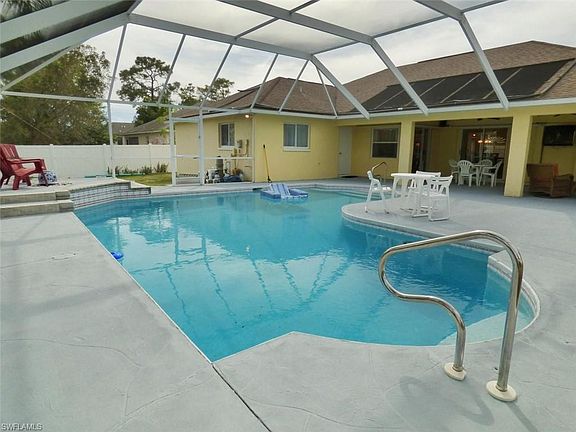 Wonderful pool home with oversized everything! Sitting on a huge lot in a lovely SW Cape neighborhood convenient to Veterans and Shops at Surfside. The pool is almost twice the size of some typical Cape pools and is surrounded by a huge enclosure and a large lanai. If you are looking for a lot of space for outdoor entertaining- here it is! Brand new roof! Upon entering the front door you open to a living room with high ceilings & sliders out to the pool. There is a nice formal dining area and then around the corner the house opens up to a lovely kitchen and large family room. All bedrooms have walk in closets (the master has 2). The master suite has pocketing sliders to the pool and is also oversized! The master bath has a Jacuzzi tub and two separate sinks areas. All the flooring is new the ac is only about 4 years old. This house needs to be on your short list!