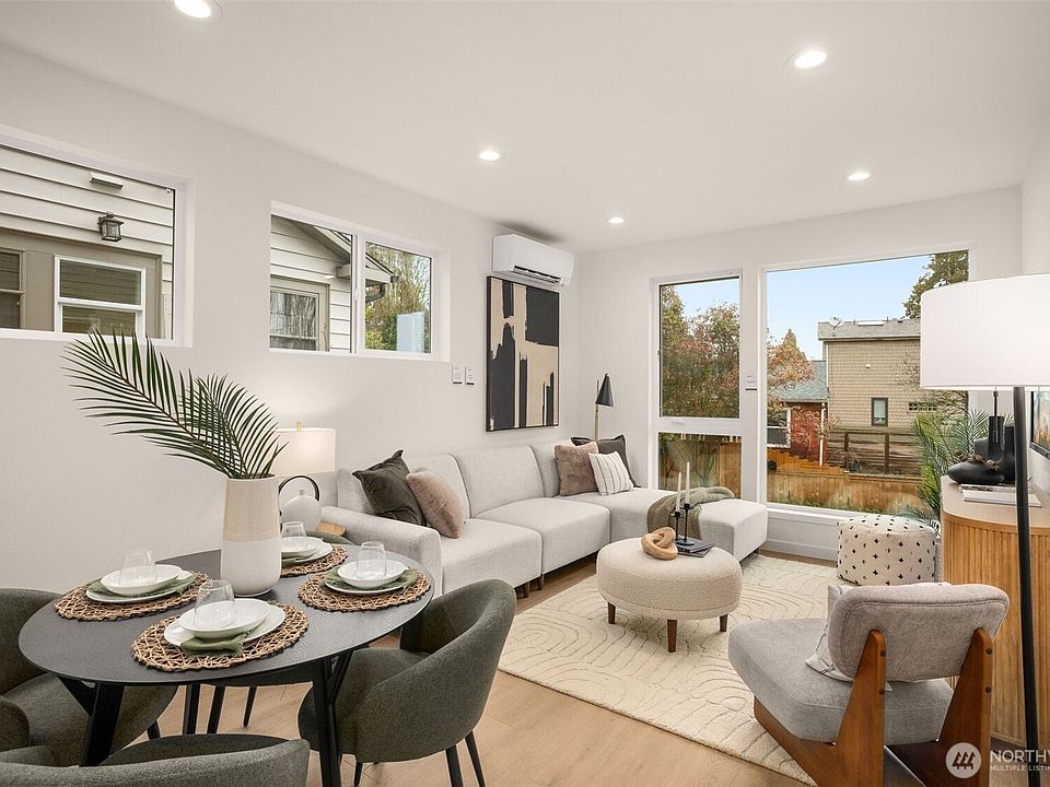 Welcome to West Harbor 6 by Shelter Homes, step into a world where modern architecture meets everyday serenity. The contemporary design is expansive and light-filled- a residential luxury. From the moment you enter, the soaring ceilings and massive walls of glass create a seamless connection between the sophisticated interior and the vibrant world outside. The heart of the home is a chef’s dream kitchen, boasting sleek minimalist cabinetry, professional-grade stainless steel appliances, and a grand waterfall island that flows effortlessly into the dining and living spaces. Ascend the custom glass-railed staircase to your private sanctuary: a primary suite that feels like a boutique hotel, featuring dramatic vaulted ceilings and a spa-inspired ensuite with a frameless glass shower and dual designer vanities. Whether you’re hosting an elegant dinner party or enjoying a quiet sunset from your private roof top deck, every inch of this home reflects meticulous craftsmanship and modern elegance. Tucked in a quiet West Seattle pocket, this location offers easy access to neighborhood parks, playgrounds, and open green space. Daily conveniences are close by with PCC, Metropolitan Market, and Thriftway nearby, while Alki Beach and the West Seattle Junction provide quick access to dining, shopping, and local favorites. A well-connected setting that balances residential calm with everyday convenience.