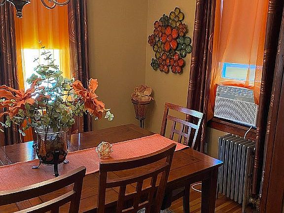Charming 2 story in excellent condition on corner lot. Hard wood floors, living room, formal dining room, eat-in kitchen, den, open staircase to 2nd floor.Large rooms, natural woodwork, stained glass, enclosed sunroom, den, walk up attic, partially finished basement, 1 car detached garage and level, fenced yard. Gas furnace and water heater, 5 years old. Modern full bathroom. Large master bedroom.