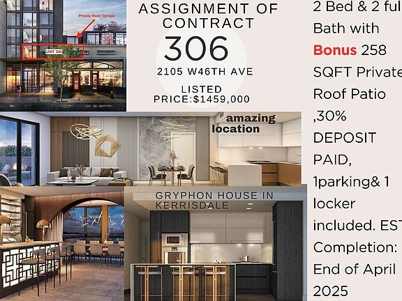 Assignment of contract.Gryphon House located in heart of prestigious Kerrisdale.A British-inspired classic contemporary timeless grandeur designed by Yamamoto Architecture.The functional layout of 2 bedroom plus 2 bathroom unit. Elegant interior design finishes with 9' ceiling and equipped with top of the line European integrated appliances package.The first class amenities including 24hr full service concierge with porter services, fitness centre, spa, state-of-the-art gym and executive lounge.Conveniently Located steps from Arbutus Greenway with, grocery stores, banks, shops and restaurants.Top -rated school catchment of Maple Grove Elementary & Magee Secondary,Private school-York house,Crafton,and St.George. PRICE CAN BE NEGOTIABLE!!! BIG DISCOUNT IS AVAILABLE!.Don't MISS OUT!