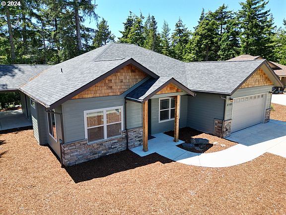 Brand new home in Willow Dunes. Pacific Northwest design & feel inside and out w/ cedar shingle accents and 2 covered patios for year-round outside enjoyment. Large .28 acre lot with Munsel Creek and nature as your border. Inside is light & airy with an excellent layout designed for comfort and convenient living. Quartz countertops, stainless steel appliances, center island, and pantry highlight the open-concept kitchen. Oversized great room with beautiful views of natural scenery in the Munsel Creek Greenway. Separate bedroom wings include a nicely appointed primary suite with double sinks and a large walk-in closet. 2 guest bedrooms with hall bath in between + a large den/office/4th bedroom. The finished garage has a large workshop area. Home is pre-wired for hot tub on the patio and electric car charging station in garage. No steps inside or out make for age-in-place opportunity. Be the first to call this home your own. Great neighborhood and excellent value!