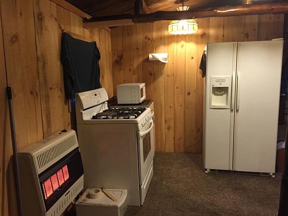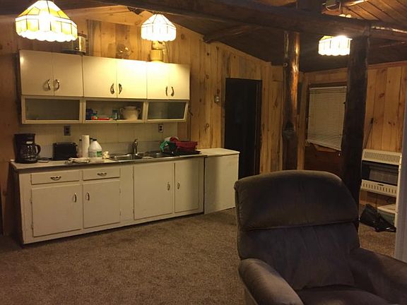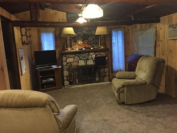 Cute two bedroom cabin near state land and ORV trails. Remodeled interior, newer roof, nice ceramic tile shower, new carpet throughout, fireplace, comes completely furnished!