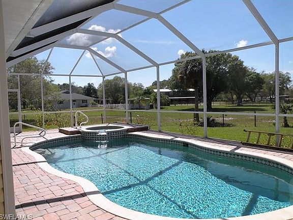 Beautiful Alva pool home on 1.5 ac. This is a solid concrete home built with Polysteel construction, metal roof and low maintenance siding. Featuring a 3 car garage, Brick like paver driveway and pool area, real wood flooring, high ceilings with 8' doors and a pool with a spa. Makes a great family home. Large lawn area that has the large oak trees that is desired by all. There is also an extra detached workshop. 4th Bedroom has a recessed closet space but no door.