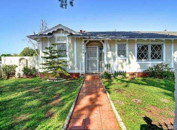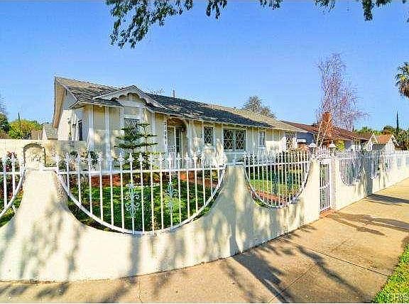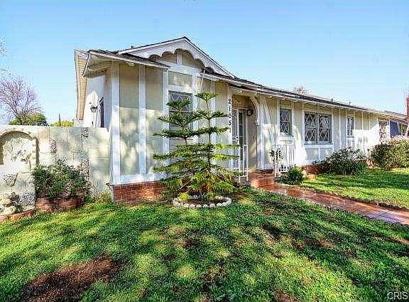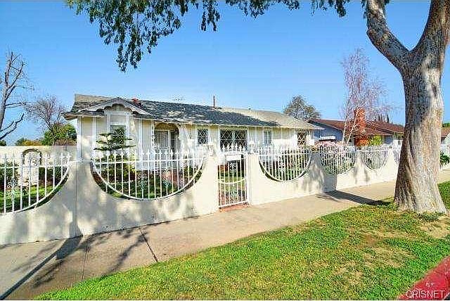 Located on a corner lot in Canoga Park is this charming storybook cottage which is now move-in ready after a recent facelift. Step inside and you will fall in love with the newly refinished original hardwood floors and brick lined fireplace. The remodeled kitchen features new tile floors, newer cabinets and granite countertops, plus stainless steel appliances. The 4 bedrooms have received new light fixtures and fresh new carpet and the two bathrooms have some updates as well. Other features include, brand new interior paint, indoor laundry room, some newer windows, and central heat/air. Step outside to your backyard, complete with covered porch, large grassy area, detached two car garage, gazebo, and small storage shed. This one is priced to sell.....don't snooze or you may lose!