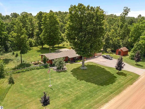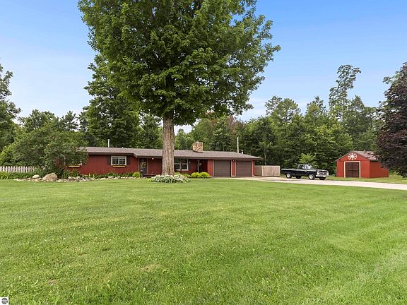 This immaculately maintained five-bedroom, two-bath home sits on one acre and offers the perfect blend of comfort, space, and Up North charm. The home rests on a beautifully landscaped, partially open lot. Three storage sheds (two 10x10 and one 12x16) offer ample room for all your gear. An underground sprinkler system keeps the shade-covered lawn vibrant, and tree-lined trails weave through the property, offering the perfect setting to explore, unwind, and take in the natural beauty and wildlife. Inside, the main level features a spacious primary bedroom with attached half bath, two additional bedrooms, a full bath, kitchen, cozy living room with pellet stove, and main floor laundry. The finished walk-out lower level adds even more versatility, with two more bedrooms, a second kitchen, and a large rec room with bar—perfect for entertaining or extended stays. Enjoy your morning coffee on the large back deck as the forest quietly comes to life around you. Seller is open to negotiating most furnishings with an acceptable offer. Conveniently located just 30 minutes from Traverse City, Cadillac, and Manistee; 15 minutes to Beulah and Benzonia; and 25 minutes to Frankfort and Lake Michigan. Four-season fun at Crystal Mountain is just a short drive away.