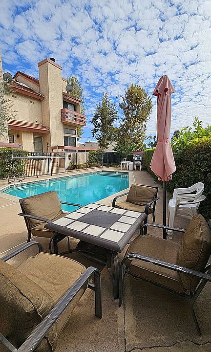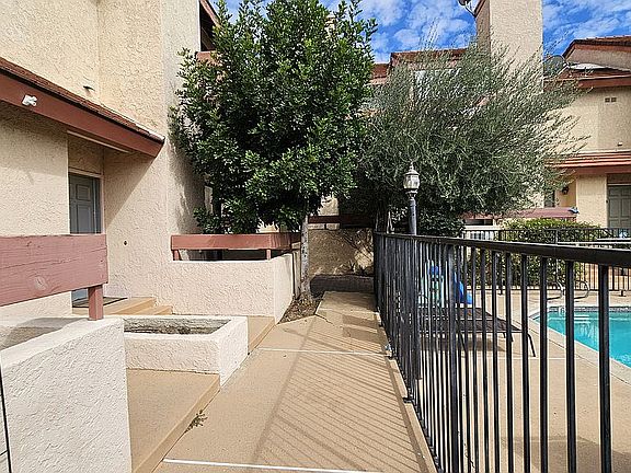 This is a small community with only 12 units and mostly owner occupied. My unit is in the middle of the complex and away from the street with less noise. View of the gated pool area from the front door and the patio area.