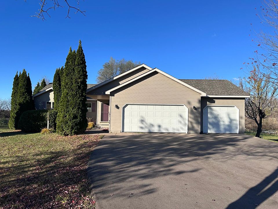 Solid built rambler w/9 foot poured walls & a fantastic floor plan including vaulted living/dining/kitchen, open kitchen w/center island & awesome cabinet space! Main floor offers primary w/private bath plus additional bedroom & full bath! Lower level has 3rd oversized bedroom plus full bath, NEW bar cabinets & tub tile in bath! 2 cozy gas fireplaces- 1 on each level! Cool details like 3/4" solid oak floor in living room, sun filled operational skylights, high end custom wood trim casings/base, 6 panel solid oak doors, interior walls insulated for sound & tons of updates-see supplements. Lovingly maintained: NEW roof w/35 year shingles (2025), carpet/flooring, Andersen patio door, driveway, hot water heater & more! BONUS 28x42 insulated, heated shop that has been rented for 10+ years. Option for renter to continue (new owner will negotiate). See agent for more info! Fabulous almost 2 acres w/mature walnut/butternut trees, apple & pear too! Boundaries extend past fenced area. See today!