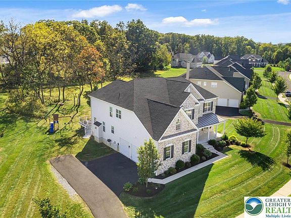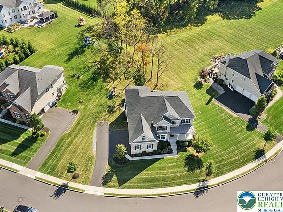 Situated in desirable Weyhill Estates within Southern Lehigh School District, this stunning Toll Brothers home offers 3,694 SF of thoughtfully designed living space with numerous upgrades. The heart of the home is the chef’s kitchen, featuring granite counters, stainless steel appliances, a large center island, 1200cfm exhaust hood, and crisp white cabinetry with under-cabinet LED lighting. The kitchen opens seamlessly to the vaulted morning room, dining area, and impressive 2-story great room with a floor-to-ceiling stone fireplace and a wall of windows that flood the space w/ natural light. Upstairs, the primary suite showcases a tray ceiling, dual walk-ins, and spa bath with dual vanities, soaking tub, oversized shower & added exhaust ventilation. All bedrooms include pre-wired ceiling fan junction boxes, while every bath has additional outlets for modern conveniences. The unfinished walk-up basement offers lots of daylight and features 9’ ceilings and plumbing rough-in. Additional highlights include redundant CAT6 throughout, a security system with owned equipment, EV charging (Tesla + NEMA 6-50), hardwired smoke/CO detectors, and heated bidet-ready bathrooms. Enjoy outdoor living on the composite deck overlooking landscaped grounds. Great location with Saucon Valley Country Club, rails to trails , Promenade Shops & commuter routes just minutes away. *BUY WITH CONFIDENCE—PRE-LISTING HOME INSPECTION AVAILABLE * 3D MATTERPORT PLUS INTERACTIVE FLOOR PLAN AVAILABLE, TOO TOO*