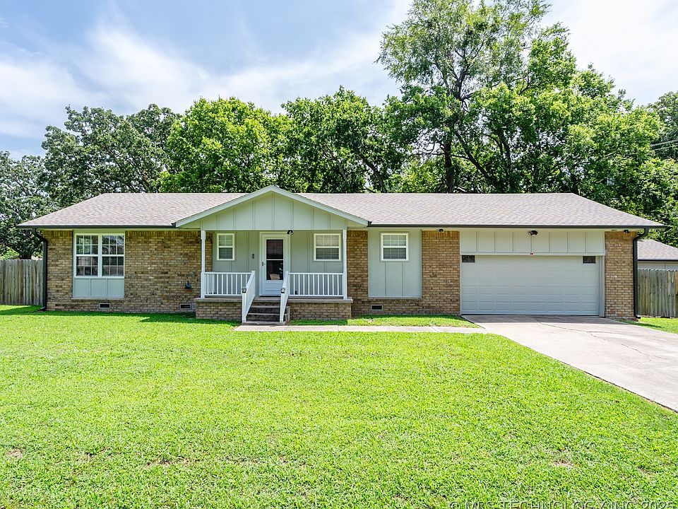 This stunning 3 bed, 2 bath home in Tahlequah combines elegance, comfort, and modern convenience in one beautifully designed package — all just minutes from Northeastern State University! Inside, you'll find wood flooring throughout, a sleek kitchen featuring marble countertops, a large island with abundant storage, custom-built cabinets, and a classic farmhouse sink. The bathrooms offer a spa-like feel with custom tile work, including a luxurious floor-to-ceiling tiled shower in the primary suite. A 13x17 heated and cooled bonus room attached to the garage adds versatile space perfect for a home office, playroom, or a man cave. Smart home features elevate everyday living, including a WiFi-enabled garage door opener, smart security lights, and a programmable smart thermostat—all easily controlled from your phone. Outside, the fully privacy-fenced backyard boasts a 12x25 covered deck perfect for entertaining or relaxing in any season. Whether you're working from home, hosting guests, or enjoying a quiet night in, this home offers timeless style and practical amenities to fit any lifestyle.