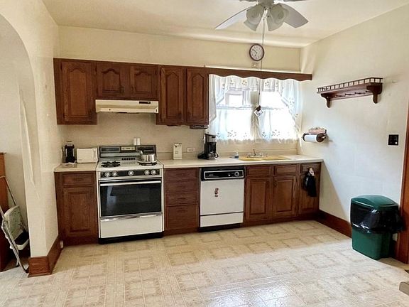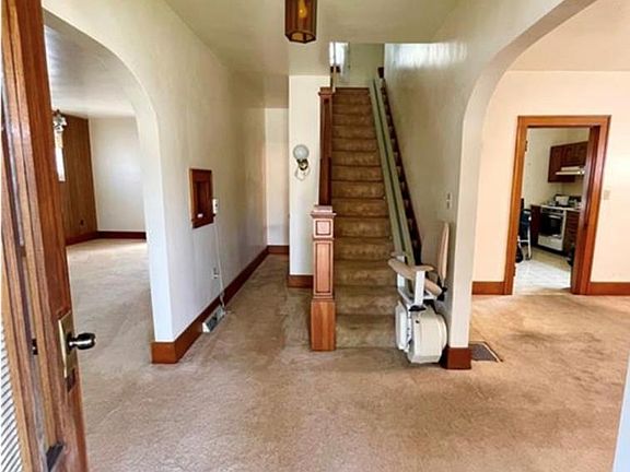 Classic craftsmanship abounds in this lovely 3 BR, 1.5 bath home! You are greeted with gorgeous oak flooring and woodwork as you enter the foyer. To the left is an expansive living room with a unique, carved stone fireplace surround. To the right is a large dining room leading to an eat-in kitchen with cabinetry on both sides and appliances that stay. A small 1/2 bath and laundry room are off the kitchen. Upstairs are 3 bedrooms, the master having built-in drawers and cabinets. The laundry shute adds to convenience and the full basement and under porch area offer extra storage.