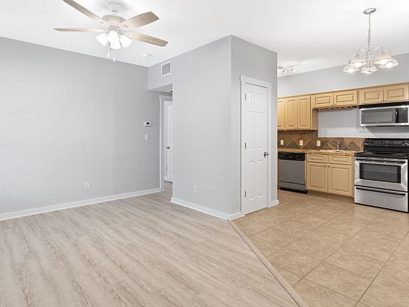 Bright low-maintenance spaceLovely chandelier-lit dining areaCozy layoutSpacious walk-in closetPet-friendly livingTile and vinyl floorsStylish backsplash kitchen