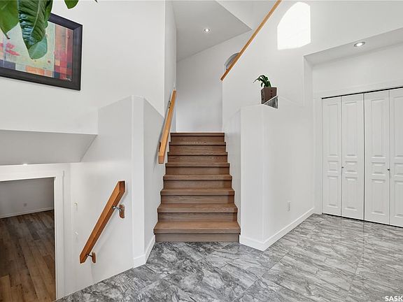 Welcome to this beautiful family home in Gardiner Park. Close to shopping, elementary school and all the east end amenities. As you enter into the large high ceiling foyer, you will immediately see the new engineering hardwoods, which are located throughout the main floor and second floor of the house. This house has an open concept layout and is filled with tons of natural light which pours through the abundance of windows. The kitchen comes complete with an eat-in nook and has extended maple cabinets with new quartz counter tops, stainless steel appliances. The kitchen opens up to the living room with a wall niche above the gas fireplace. A nice sized bedroom, a 4 piece bathroom and a big laundry room finished the main floor. The second level features a spacious master bedroom, with a large walk-in closet and ensuite that features a corner jetted tub surrounding in marble. The lower level is totally finished and includes a huge rec room , the 3rd bedroom, a big den which can be used us the 4th bedroom if needed, and a convenient 3 pc bathroom. The 4 feet windows give the lower level that nice open feeling. The utility room has tons of room for storage or a hobby room. Double 24' x 22' attached garage is insulated & boarded. Nice sized deck overlooks the backyard with lawn and garden area, low maintenance front yard. Upgrade recent years includes but not limited to: new shingles in 2025, new engineering hardwood flooring on main floor, second floor and stairs to the basement in 2025, new quartz kitchen counter tops in 2025, new vinyl plank flooring in the basement in 2025, new microwave hood fan and kitchen sink in 2025, etc. For more questions please contact the listing agent today.