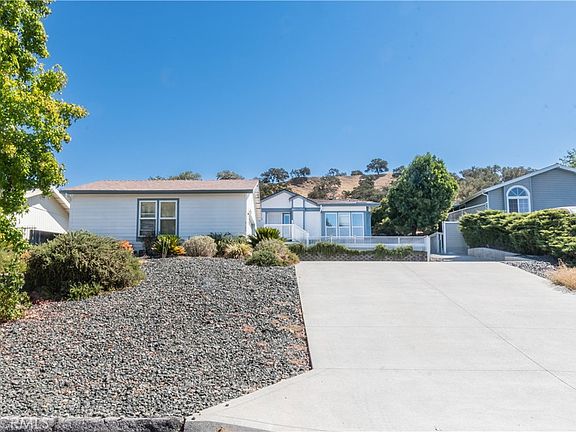 Affordable opportunity to own a great home in the wonderful gated community of Heritage Ranch in Paso Robles. This 1,967 +/- sf manufactured 3 BD, 2 BA home sits on a sizable 8000+ sqft lot, has a detached, 2 car garage and backs up to beautiful oak-graced hills. Upon entering the home, you will enjoy a formal living room that welcomes in the light from the afternoon setting sun. Continuing through to the large living room with a wood burning fireplace, perfect for relaxing and cozying up on those brisk winter evenings. The kitchen features stainless steel appliances, center island, breakfast bar and pantry. A sliding glass door welcomes you out to the patio, ideal for summer BBQs and get togethers. Down one hallway, you will find the two comfortable guest bedrooms and guest bathroom. The primary bedroom gazes out to the oak tree filled hillside, adding an extra touch of serenity. Features including double sinks and stall shower with separate tub are found in the primary bathroom. You are close to the Oak Hill Market Shopping Center, pools, hiking trails, school, fuel station and the Heritage launch ramp. With its location in the gated community of Heritage Ranch and its proximity to Lake Nacimiento, it's perfect for someone who loves the outdoors and wants easy access to amenities.